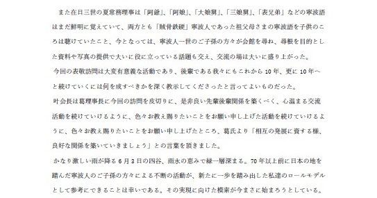 2017/09/13 理事会の活動 致日本麗水同郷会賀電